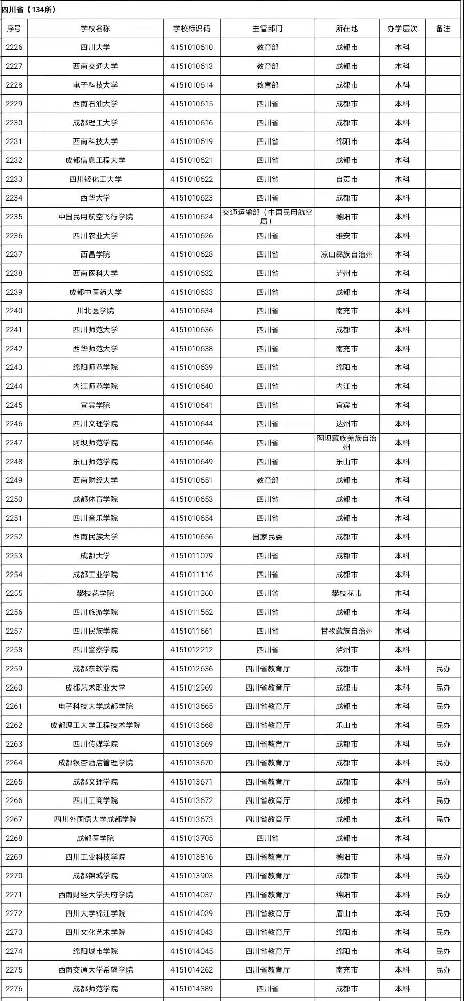 全國高等學(xué)校名單最新發(fā)布!四川有這134所→